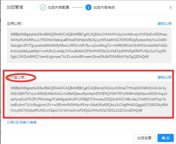強(qiáng)調(diào): 這里的支付寶公鑰才是后續(xù)我們要用的信息,否則會(huì)驗(yàn)證簽名不通過(guò)